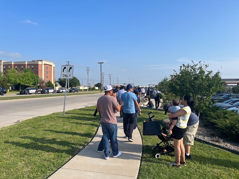 With hundreds of people standing out in the middle of a hot, humid day, the gas station across the street sold out of bottled water.