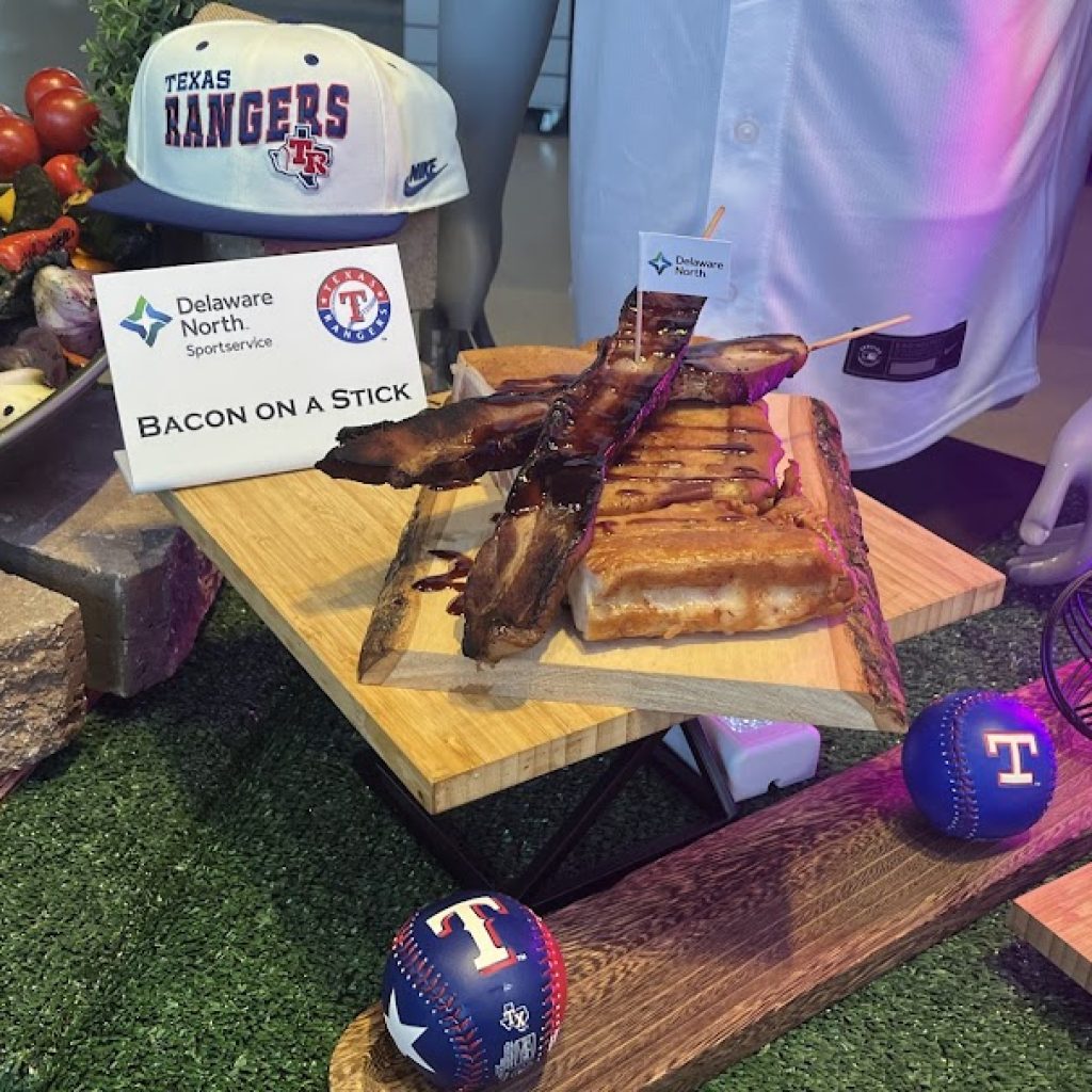 Bacon on a Stick is thick-cut Danish bacon, cooked to crispy perfection and glazed with sweet Dr Pepper BBQ sauce. Served on a stick for easy enjoyment. Available at Sections 23, 123 and 230.