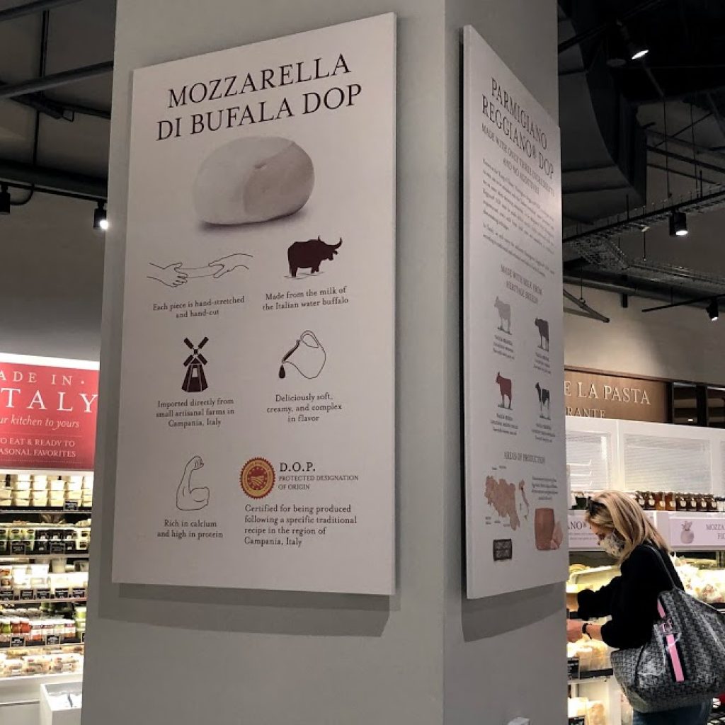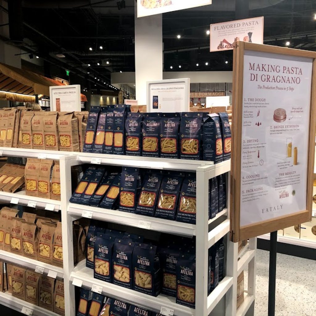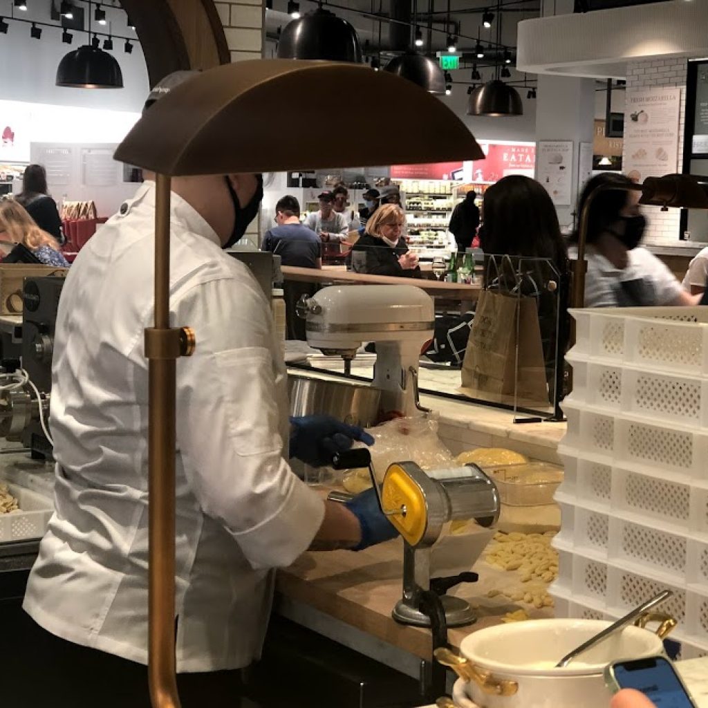 But Eataly is opening at a borderline difficult time to establish yourself in a new market. They're limiting capacity to 25% instead of 50. They also placed educational social distancing markers on the floors.