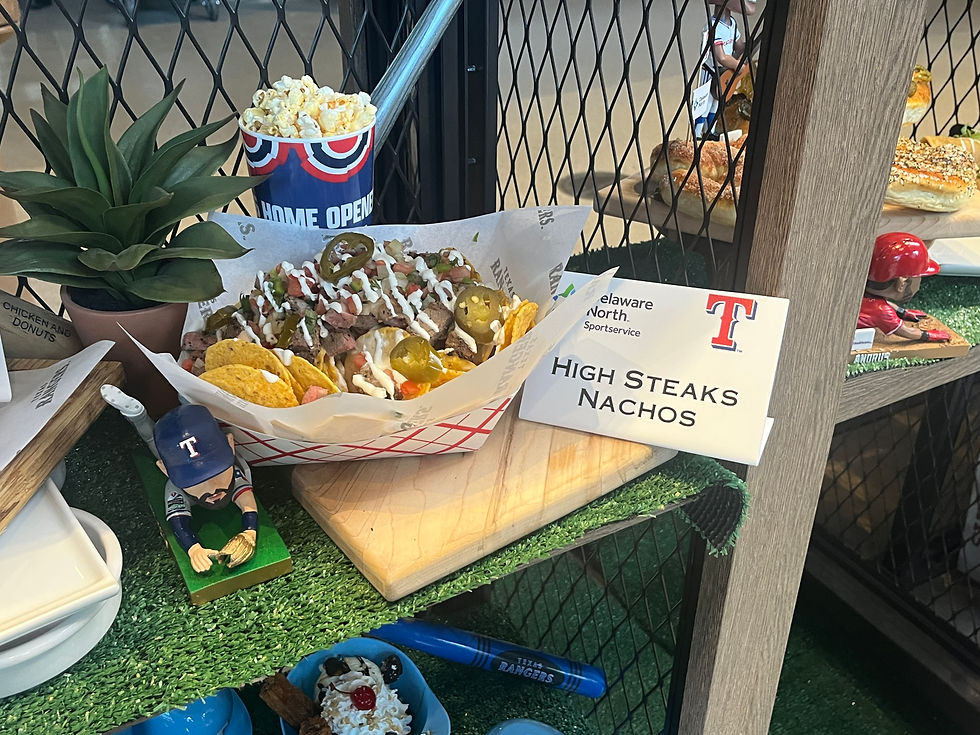 The pursuit of the best ballpark food has exploded into the most delicious arms race in decades (much more delicious than the Cuban missile crisis). Loyal Scaiaholics will recall I head to the Rangers' ballpark each year to monitor their progress at the beginning of the Major League season.