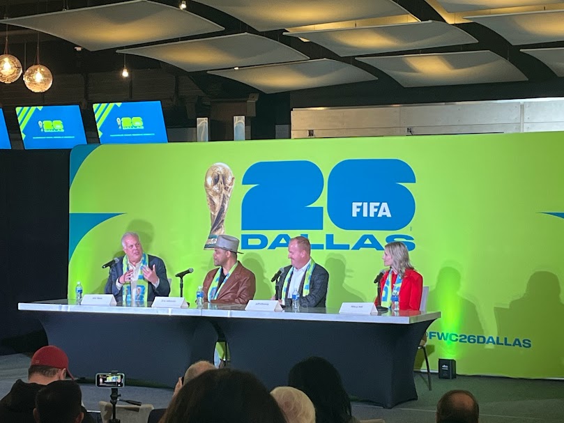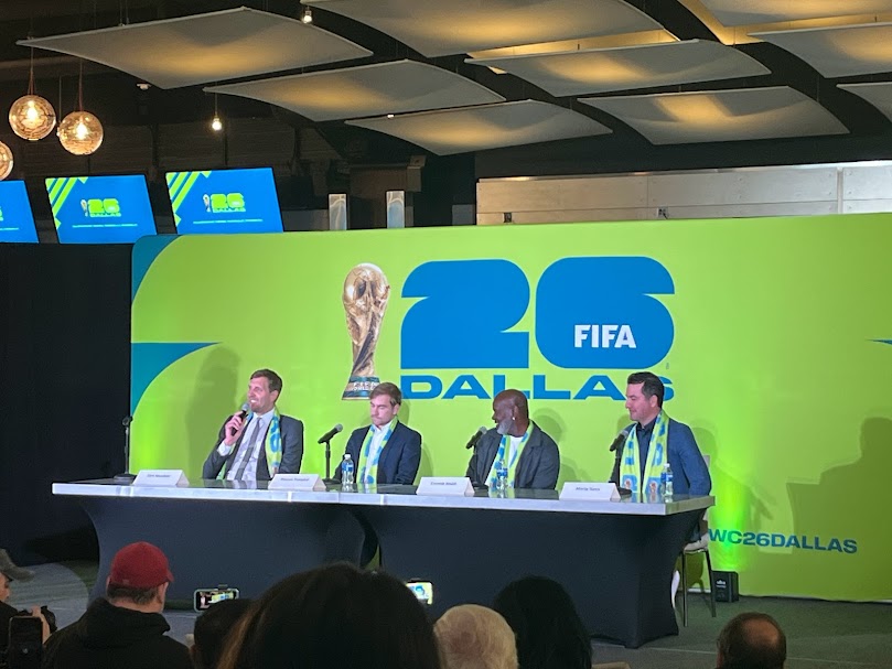 I went to AT&T Stadium Sunday for the announcement of match assignments for the 2026 World Cup. The media relations folk explained everyone was going to watch the announcement together and then come up to talk to reporters in phases: first, DFW sports icons, then mayors, then Jerry Jones and the head of the Dallas Sports Commission.